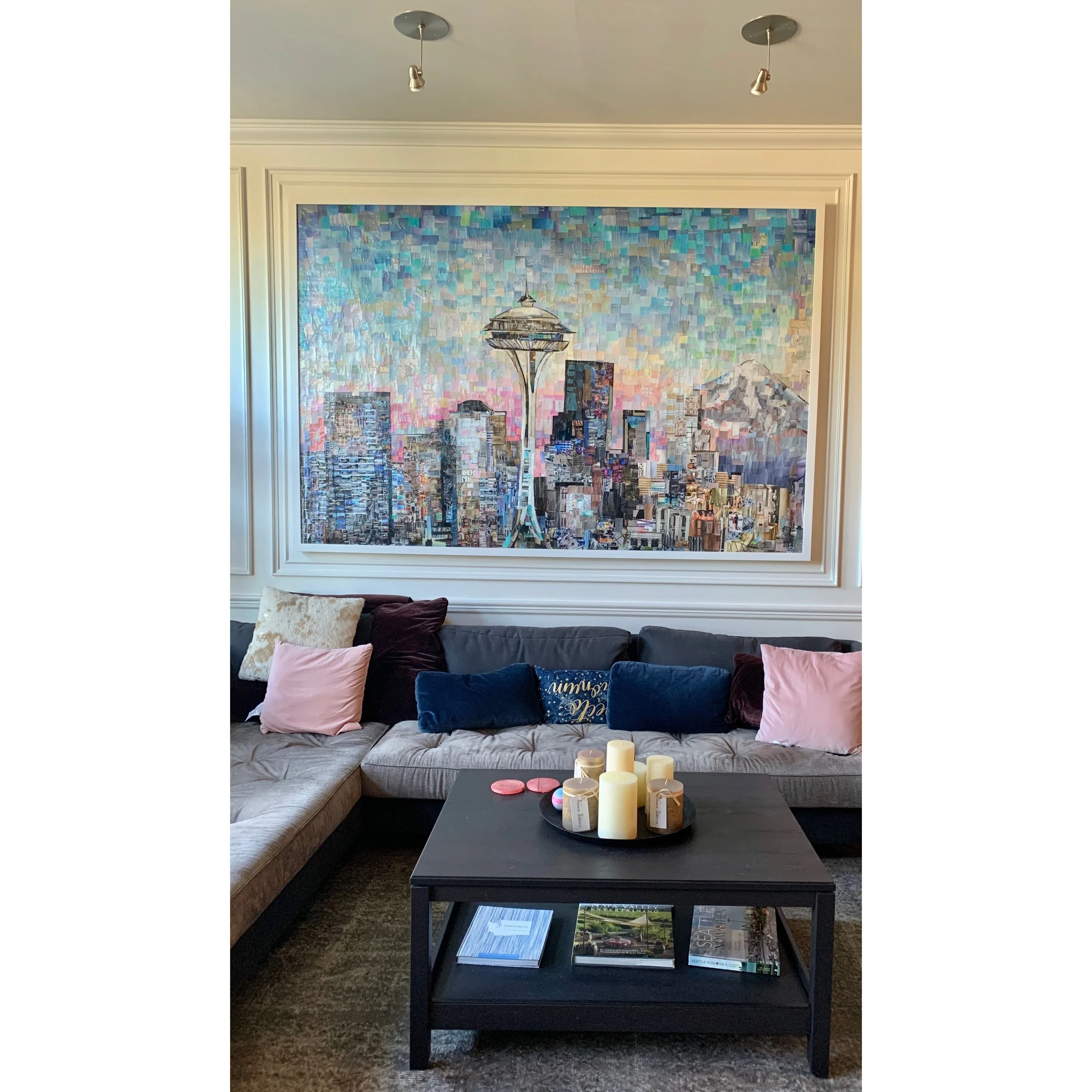 ✨ART CLIENT STORIES✨ Mark Schuster is an acclaimed Pacific Northwest architect and real estate developer and author of “Lofty Heights” telling about his experience building a dream: Mosler Lofts in the Belltown neighborhood of Seattle. He initially discovered an already-sold Dolly Parton piece I created at a local gallery in Ballard. A musician himself and enthusiastic fan of Dolly’s records, he contacted me in the Fall of 2021 to get his own custom commission of her to hang in his new music room on Whidbey Island. Several months later in the summer of 2022 I had a book signing event on the island and Mark invited me out to you be of his dinner parties so he could get a picture taken with me and Dolly.