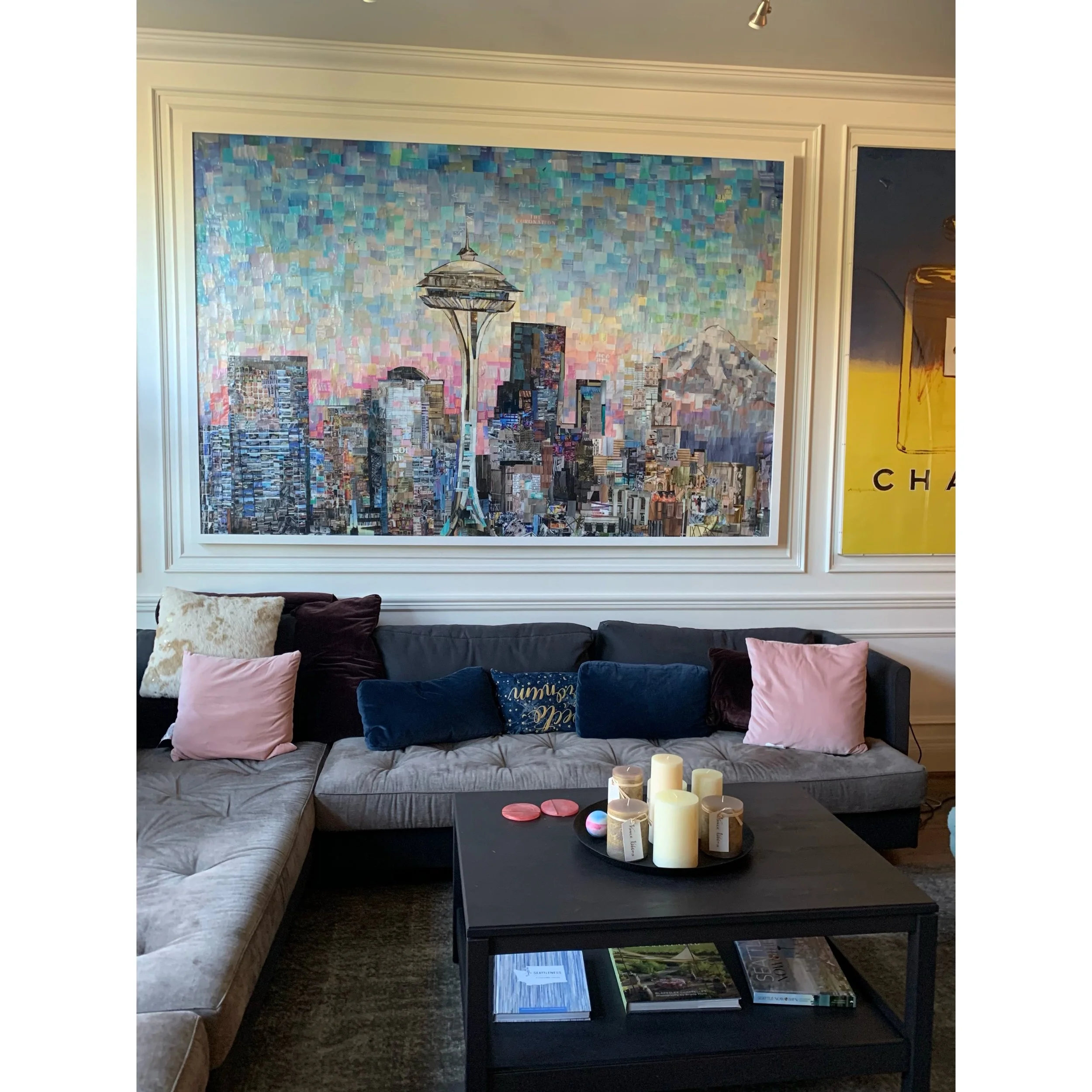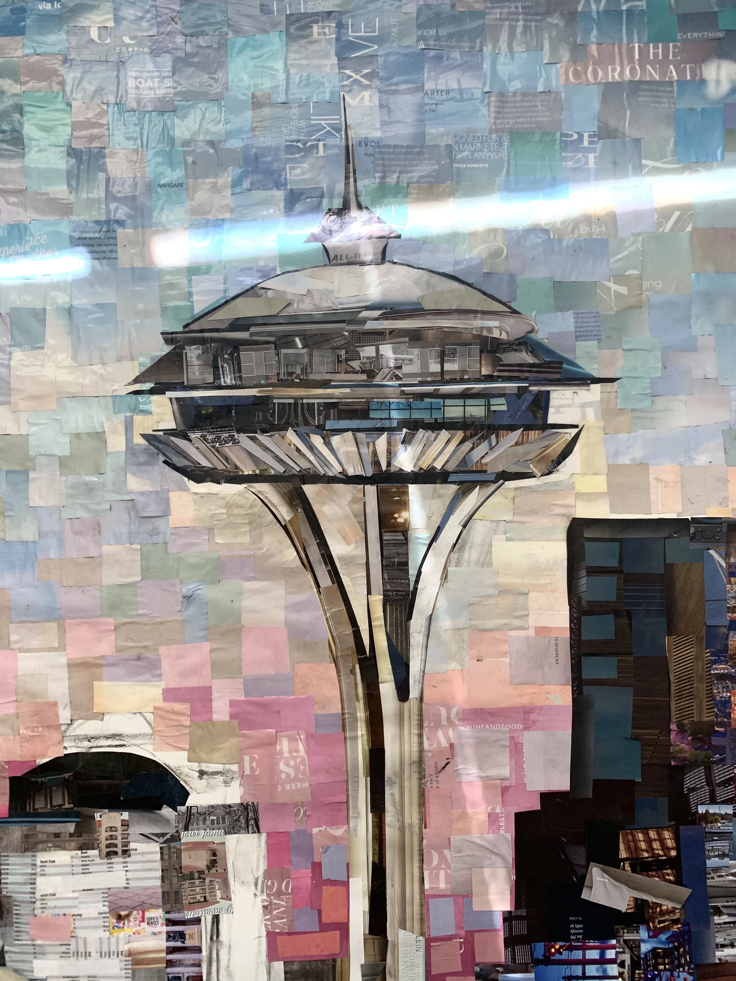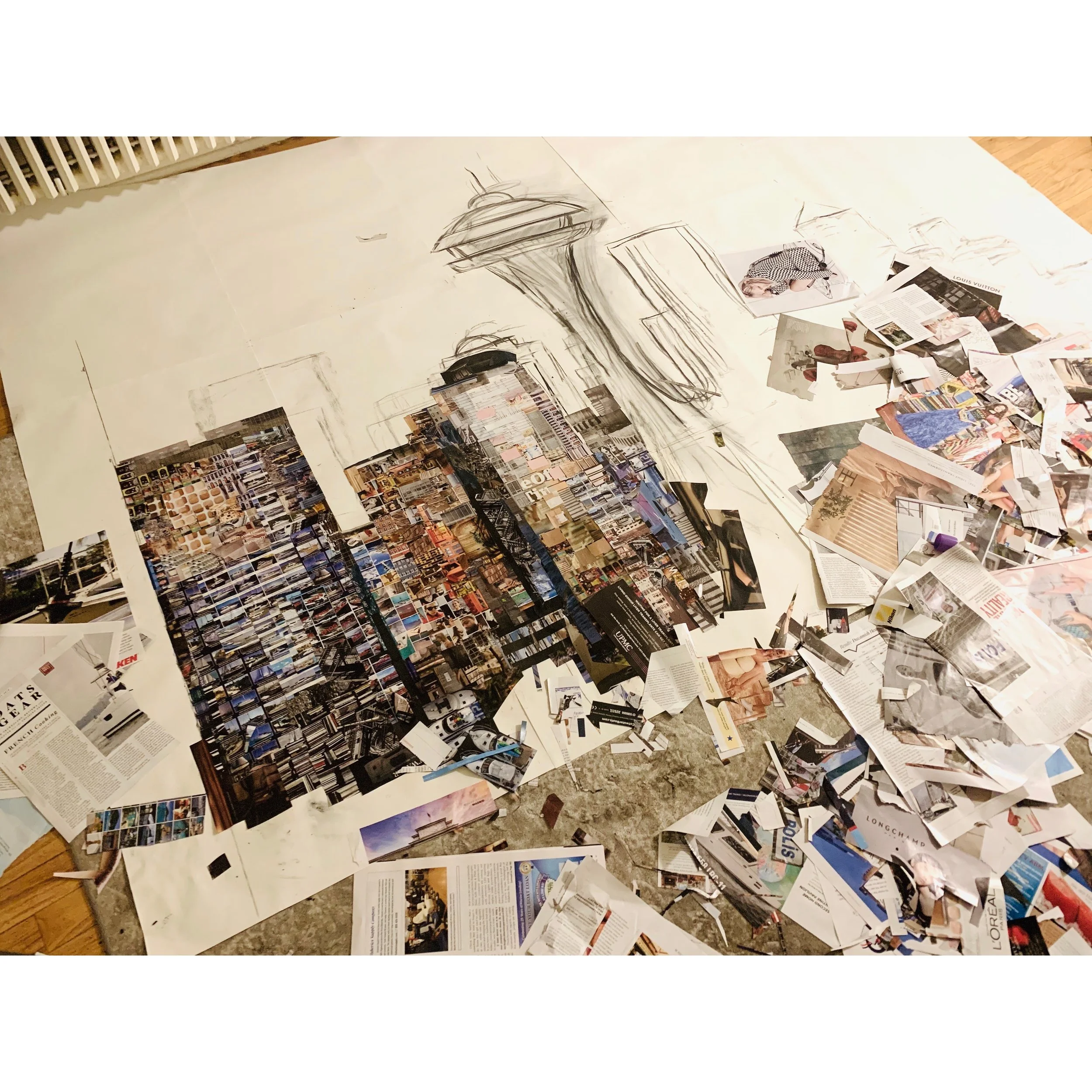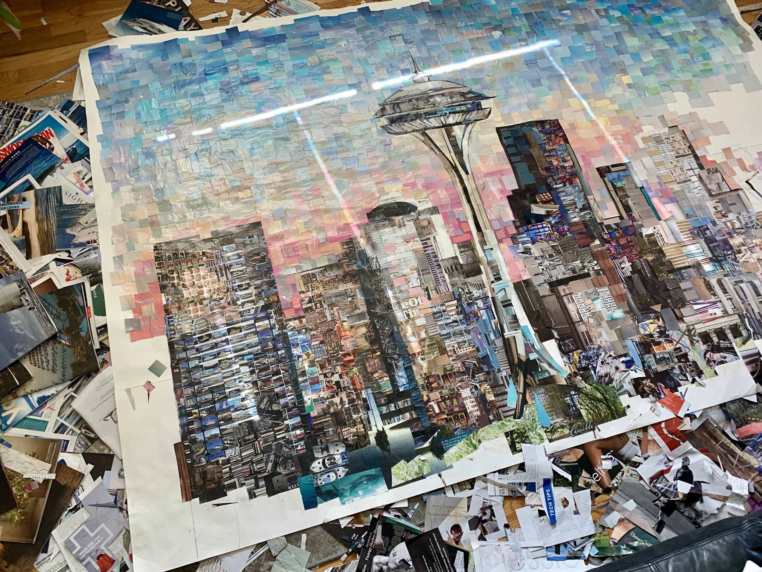 I created this massive collage, my first architectural portrait, for a Seattle client back in 2019 when I was living there. They are the family who owns the Space Needle so this was a very special project….Special thanks to Crows Nest Yachts on Lake Union for gifting me all of their recycled boating magazines!